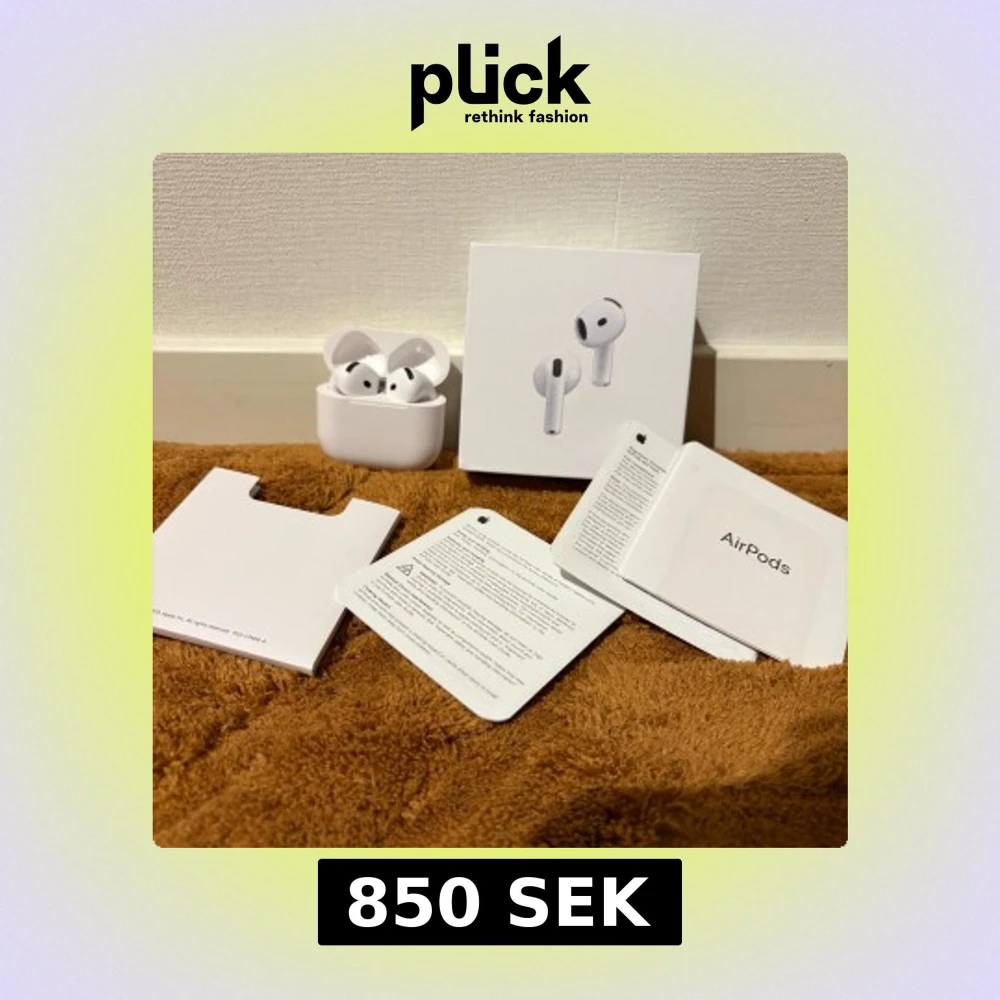 Säljer ett par Apple AirPods 4 med originalförpackning och manualer. Hörlurarna och laddningsetuiet är i fint skick utan synligt slitage. Trådlös laddning och enkel anslutning till Apple-enheter. Perfekt för musik, samtal och träning.