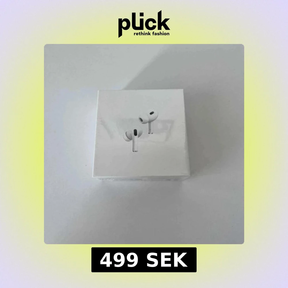 Säljer ett par AirPods Pro 2nd Generation med MagSafe-laddningsetui. Produkten är i nyskick och levereras i originalförpackning med allt tillbehör. Perfekt för dig som vill ha aktiv brusreducering och hög ljudkvalitet. Inga synliga defekter eller slitage.