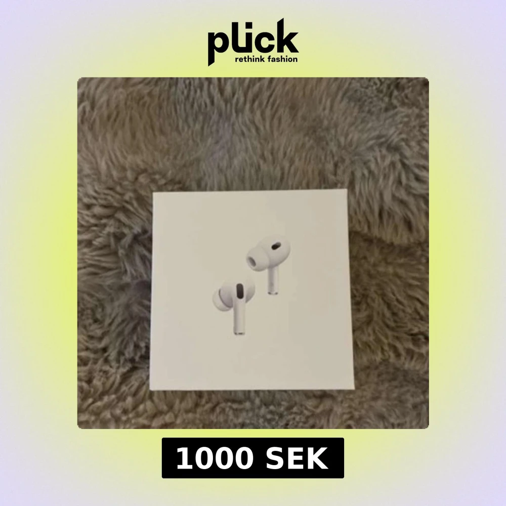 Säljer ett par Apple AirPods Pro i originalförpackning. Allt ser komplett ut med laddningsetui och kabel. Produkten ser ut att vara i mycket gott skick utan synliga repor eller slitage. Perfekt för dig som vill ha trådlösa hörlurar med aktiv brusreducering.