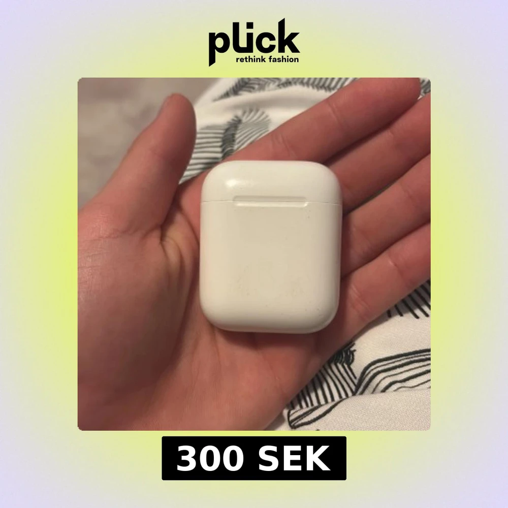Apple AirPods 2 med laddningsetui. Trådlösa hörlurar med enkel anslutning till iPhone och andra Apple-enheter. Skick: synligt slitage och repor på etuiet, samt smuts på insidan av locket. Hörlurarna fungerar och laddas som de ska.