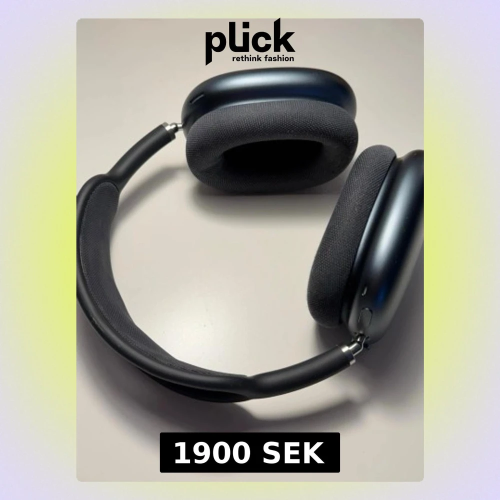 Snygga Apple AirPods Max i svart färg. Over-ear hörlurar med aktiv brusreducering och hög ljudkvalitet. Skicket är mycket bra, inga synliga repor eller skador. Mjuka och rena öronkuddar, allt fungerar som det ska. Perfekt för musik, film och samtal.