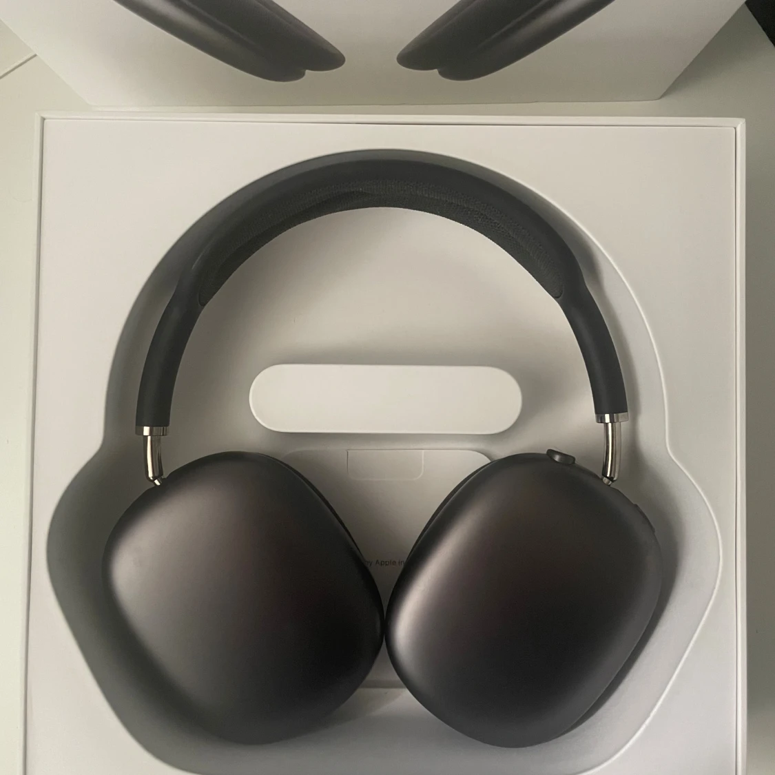 Snygga Apple AirPods Max i svart, med originalförpackning. Trådlösa over-ear hörlurar med aktiv brusreducering och hög ljudkvalitet. Mindre repa synlig på ena kåpan, i övrigt fint skick. Perfekt för musik, film och samtal. Levereras med skyddsfodral och origanallådan. Köptes för cirka 1 år sedan, men har inte använts i så stor utsträckning.