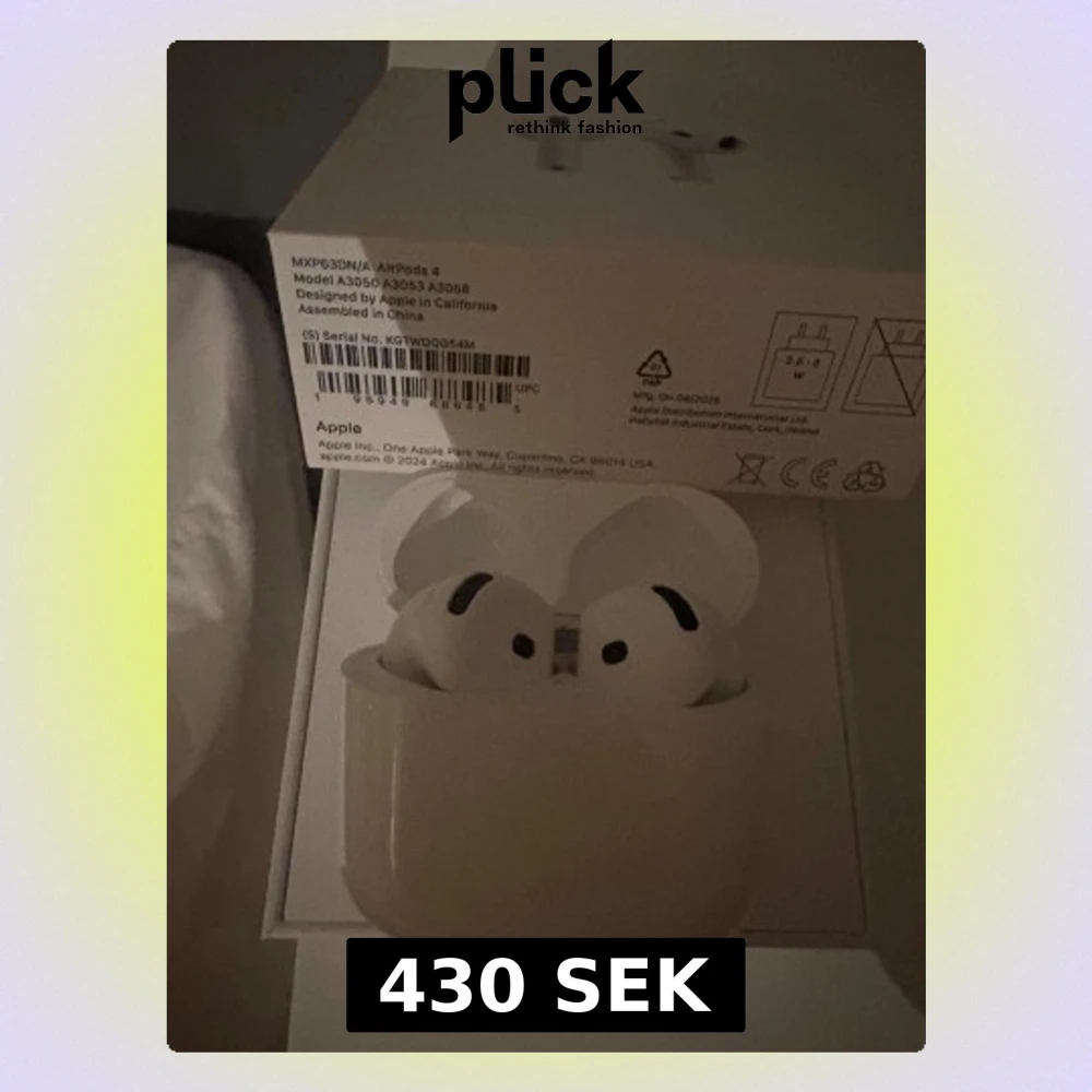 Snygga och moderna Apple AirPods 4 med laddningsetui. Trådlösa hörlurar med aktiv brusreducering och hög ljudkvalitet. Produkten ser ut att vara i mycket gott skick, inga synliga repor eller skador. Perfekt för musik, samtal och träning.