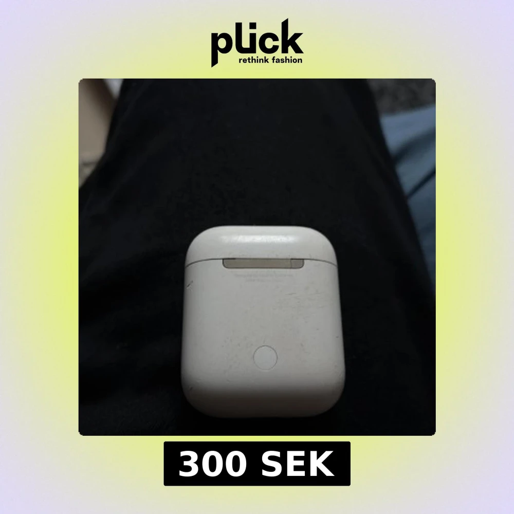 Apple AirPods 2 med laddningsetui. Fungerar bra, laddningsindikator lyser. Skick: synligt slitage och repor på både etui och hörlurar, men inga större skador. Perfekt för dig som vill ha trådlösa hörlurar till ett bra pris.