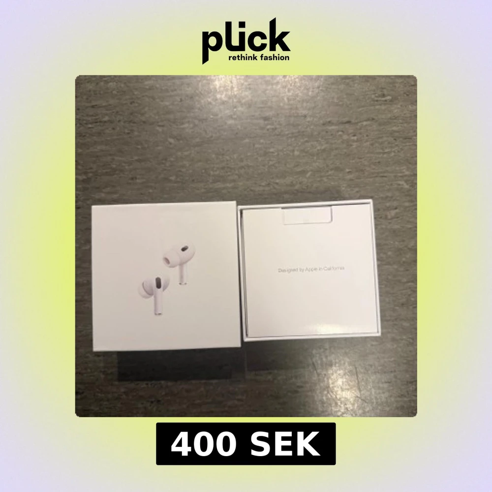 Säljer ett par Apple AirPods Pro i originalförpackning. Komplett med laddningsetui, extra öronproppar och laddkabel. Allt ser ut att vara i nyskick utan synligt slitage. Perfekt för dig som vill ha trådlösa hörlurar med aktiv brusreducering och hög ljudkvalitet.