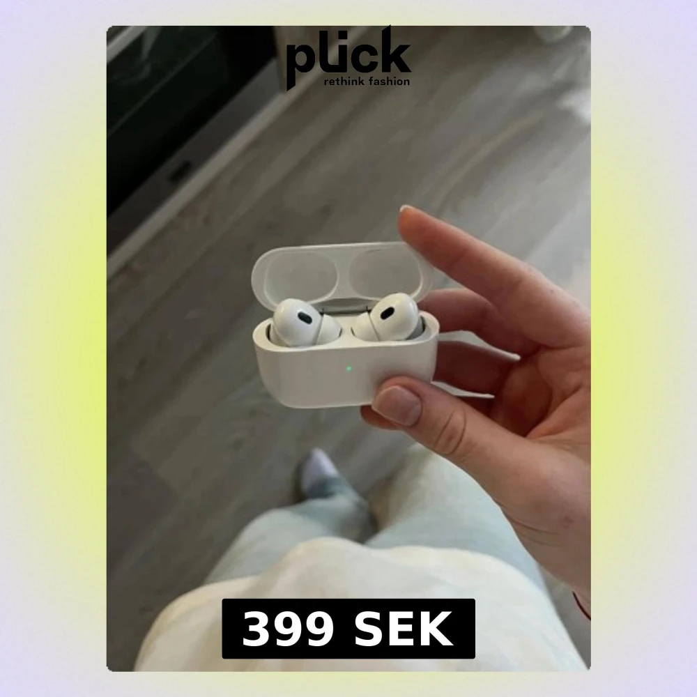 Säljer ett par vita Apple AirPods Pro med laddningsetui. De är kompakta, har en stilren design och är gjorda i blank plast. Perfekta för dig som vill ha riktigt bra ljud och brusreducering i ett smidigt format. Laddningsetuiet har en LED-indikator på framsidan.