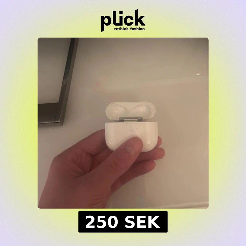 Säljer ett par AirPods 3e generationen med laddningsetui. Fungerar utmärkt, men viss smuts och mindre repor syns på etuiet och insidan. Perfekt för dig som vill ha trådlösa hörlurar med aktiv brusreducering och hög ljudkvalitet till ett bra pris.