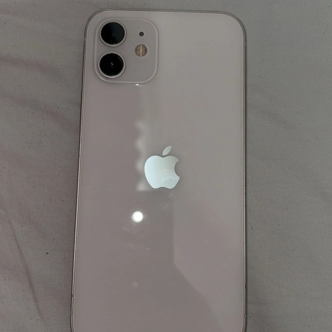 Snygg iPhone 12 i vitt med dubbla kameror och stilren design. Baksidan ser ut att vara i gott skick med endast mindre ytliga repor. Perfekt för dig som vill ha en pålitlig och modern smartphone från Apple. 94% batteri hälsa, tillkommer utan box och kvitto