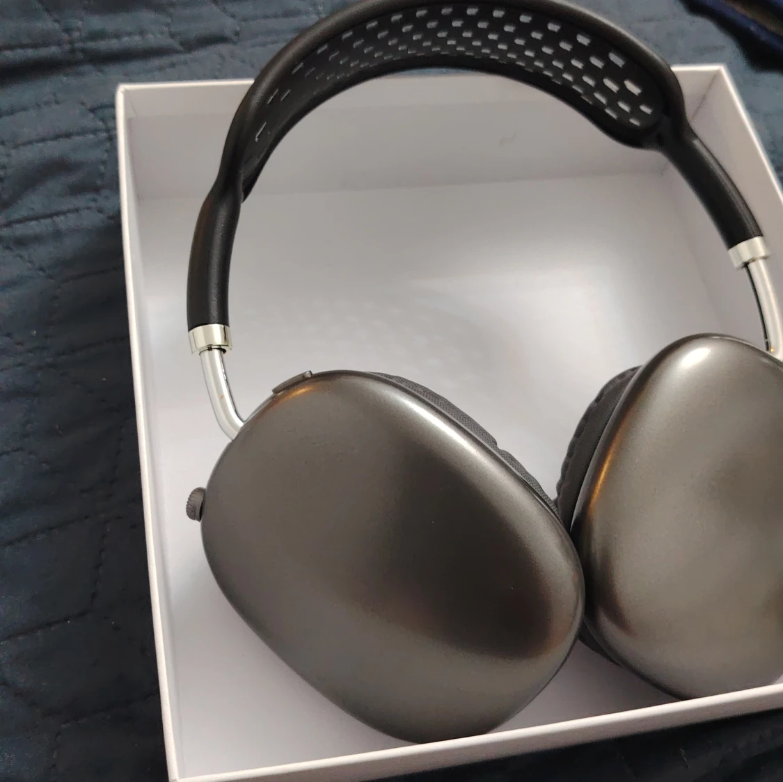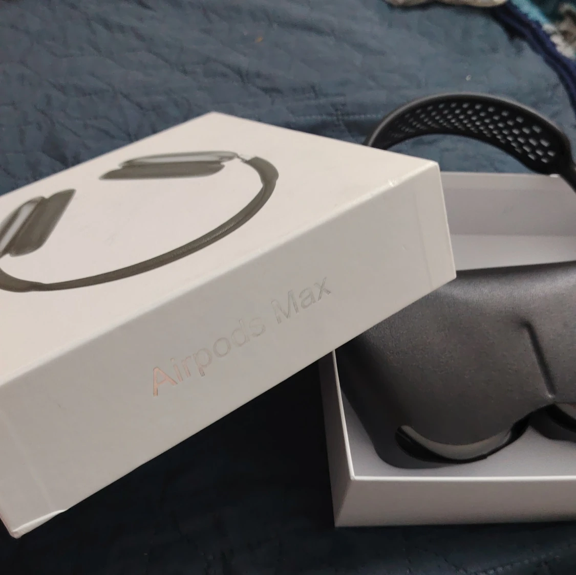 Snygga Apple AirPods Max i Space Gray, komplett med originalförpackning, skyddsfodral och laddningskabel. Hörlurarna är i mycket gott skick utan synligt slitage. Upplev aktiv brusreducering, hög ljudkvalitet och komfort i premiumdesign. Perfekt för musik, film och samtal.