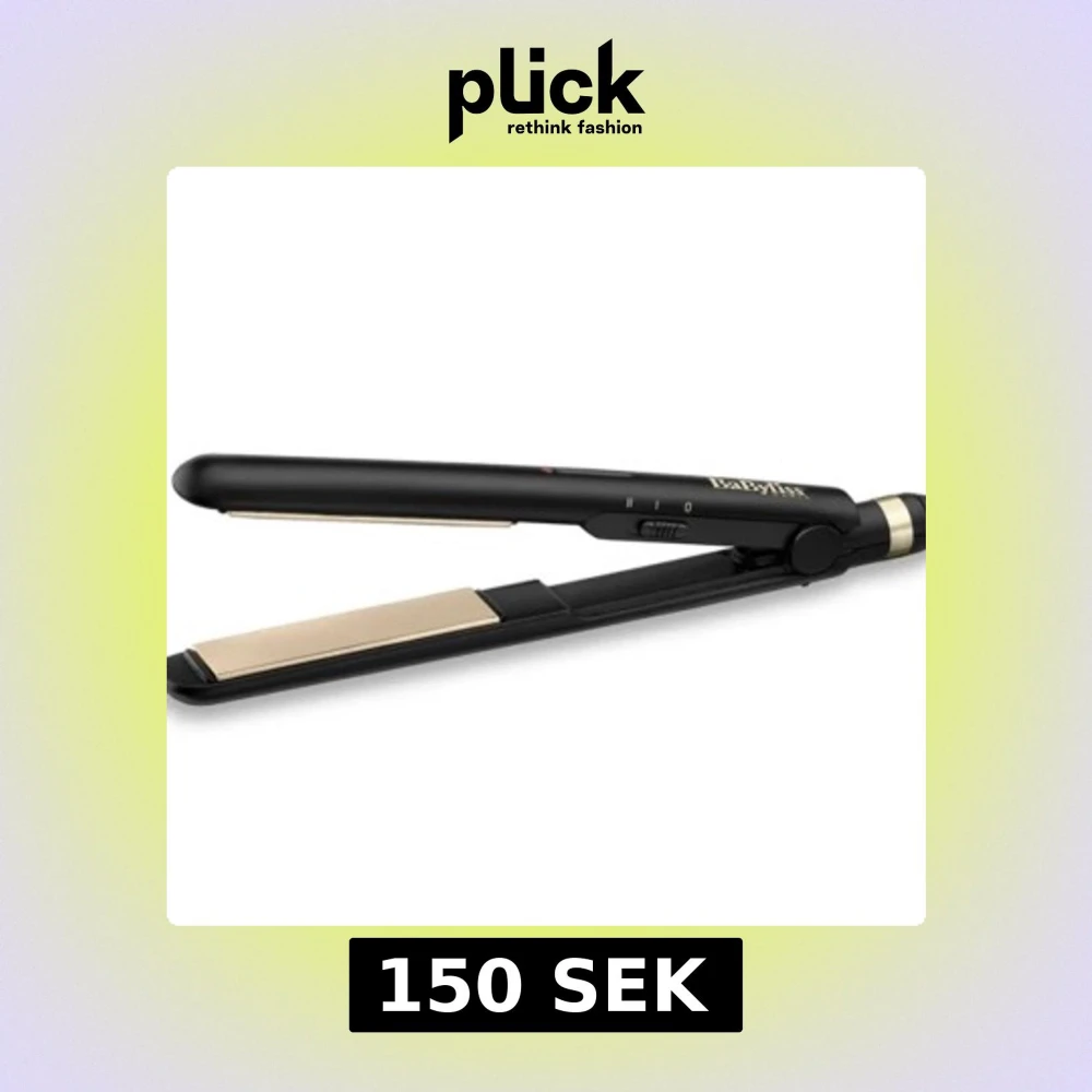 BaByliss plattång i svart med guldplattor, passar för både lockning och rakning av hår. Synligt i gott skick utan större repor eller slitage. Enkel att använda med on/off-knapp och värmeinställning.
