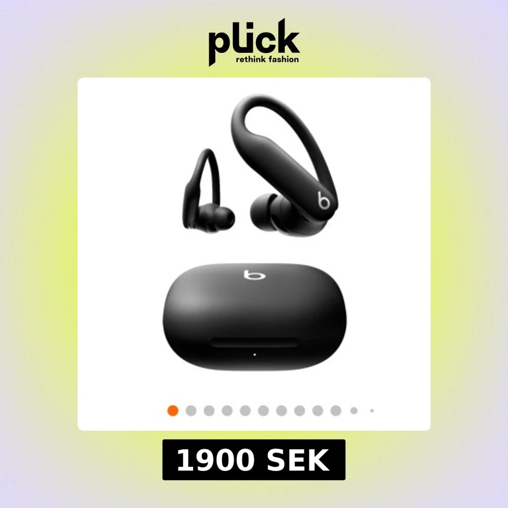 Beats Powerbeats Pro trådlösa hörlurar i svart med laddningsetui. Ergonomisk design med öronbygel för säker passform, perfekt för träning. Produkten ser ut att vara i mycket gott skick utan synligt slitage eller defekter.