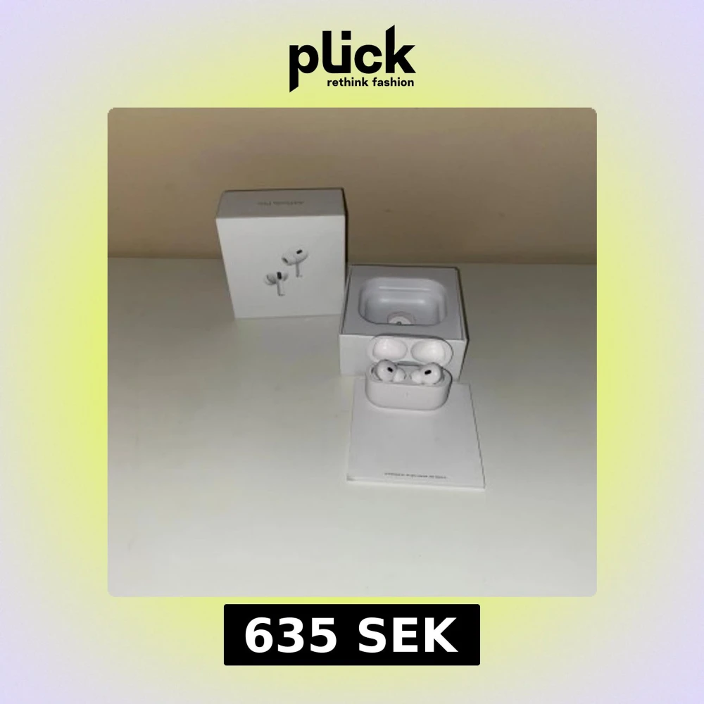 Säljer ett par AirPods Pro med originalförpackning och laddningsetui. Hörlurarna är i bra skick. Aktiv brusreducering och trådlös laddning. Perfekt för musik, samtal och träning. Komplett med allt som syns på bilderna.