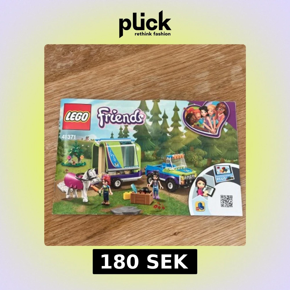 Komplett LEGO Friends 41371 set med Mia, häst, bil och hästtransport. Färgglada delar, figurer och tillbehör ingår. Setet är i mycket fint skick, inga synliga defekter det som saknas är ett extra hår till en gubbe och den blå borsten. Perfekt för lek och samlare!