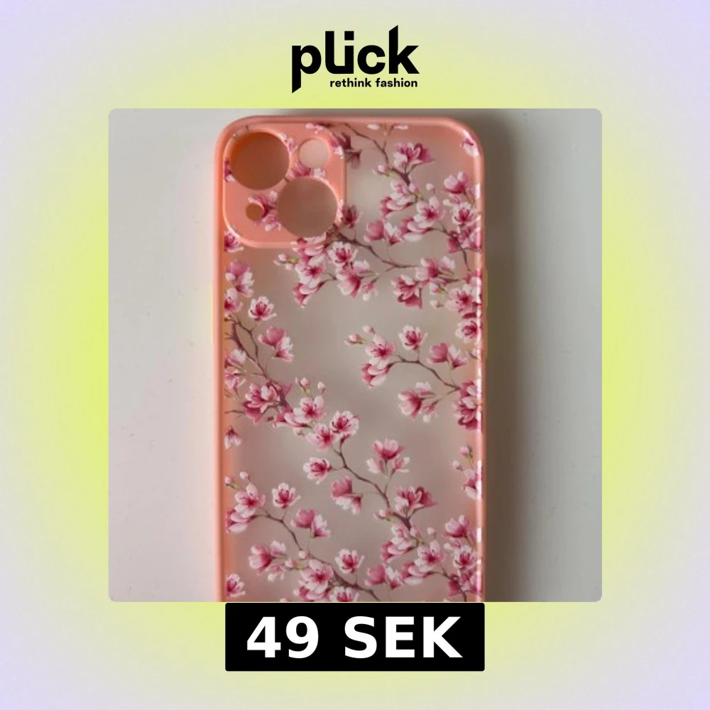 Mobilskal med rosa blommönster, designat för iPhone 14. Skalet är i nytt skick, aldrig använd och utan synligt slitage.