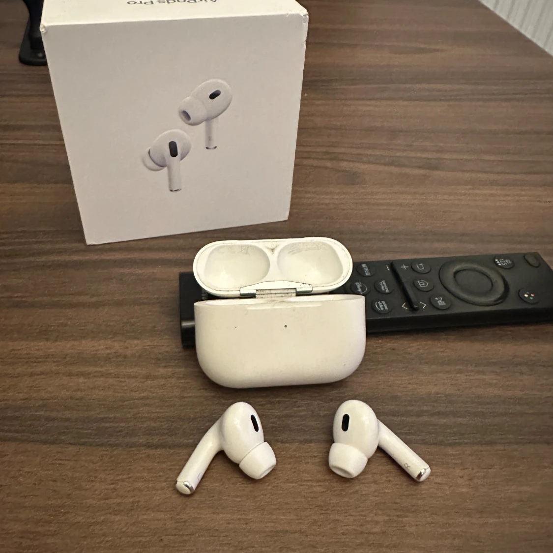 (ÄKTA) Apple AirPods 2 Pro i mycket fint skick, komplett med originalförpackning. inköpta från Netonnet för runt 6 månader sedan, Säljer då jag vill köpa dem nya airpod 3 pro kan diskutera pris vid snabb affär