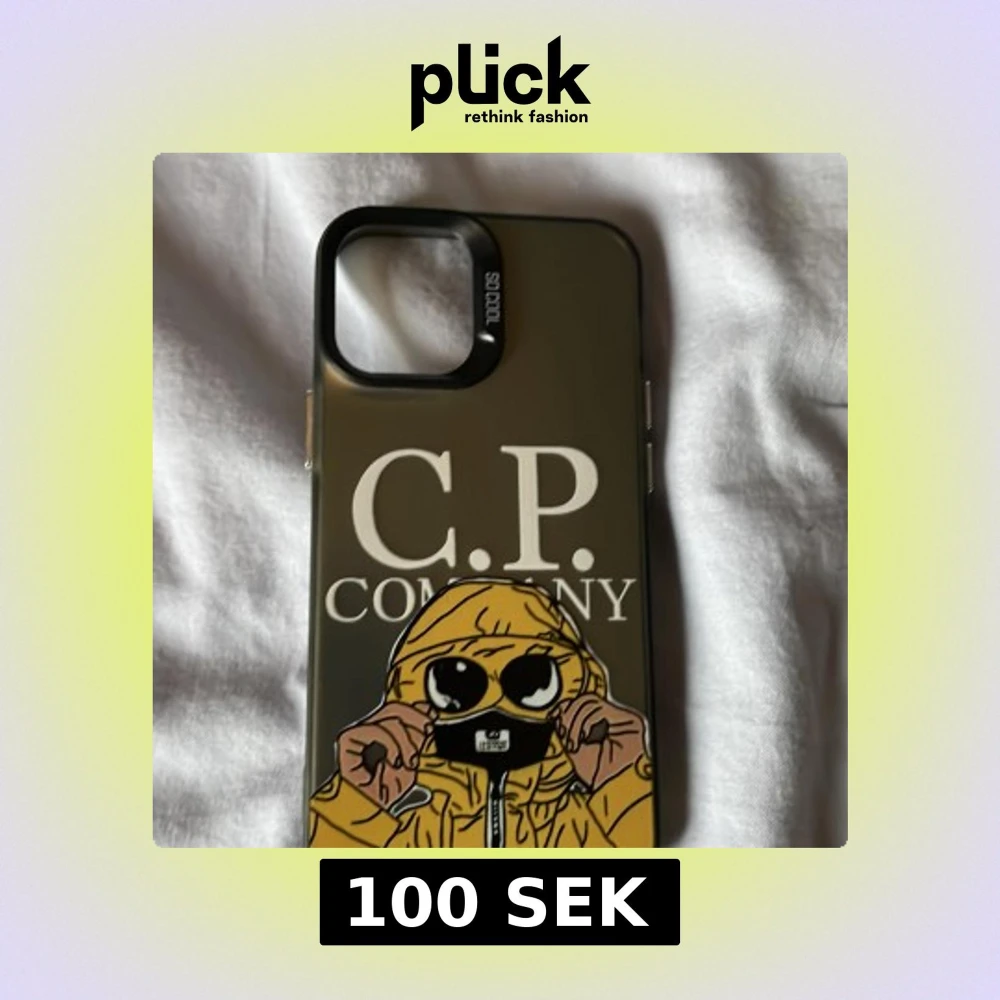 Stilrent iPhone-skal med C.P. Company-motiv och illustration. Skalet är genomskinligt med svarta och gula detaljer. Viss yttre slitage och repor syns på baksidan, men knappar och kanter är hela. Passar utmärkt för dig som vill skydda din iPhone med stil. Till iPhone 12 mini