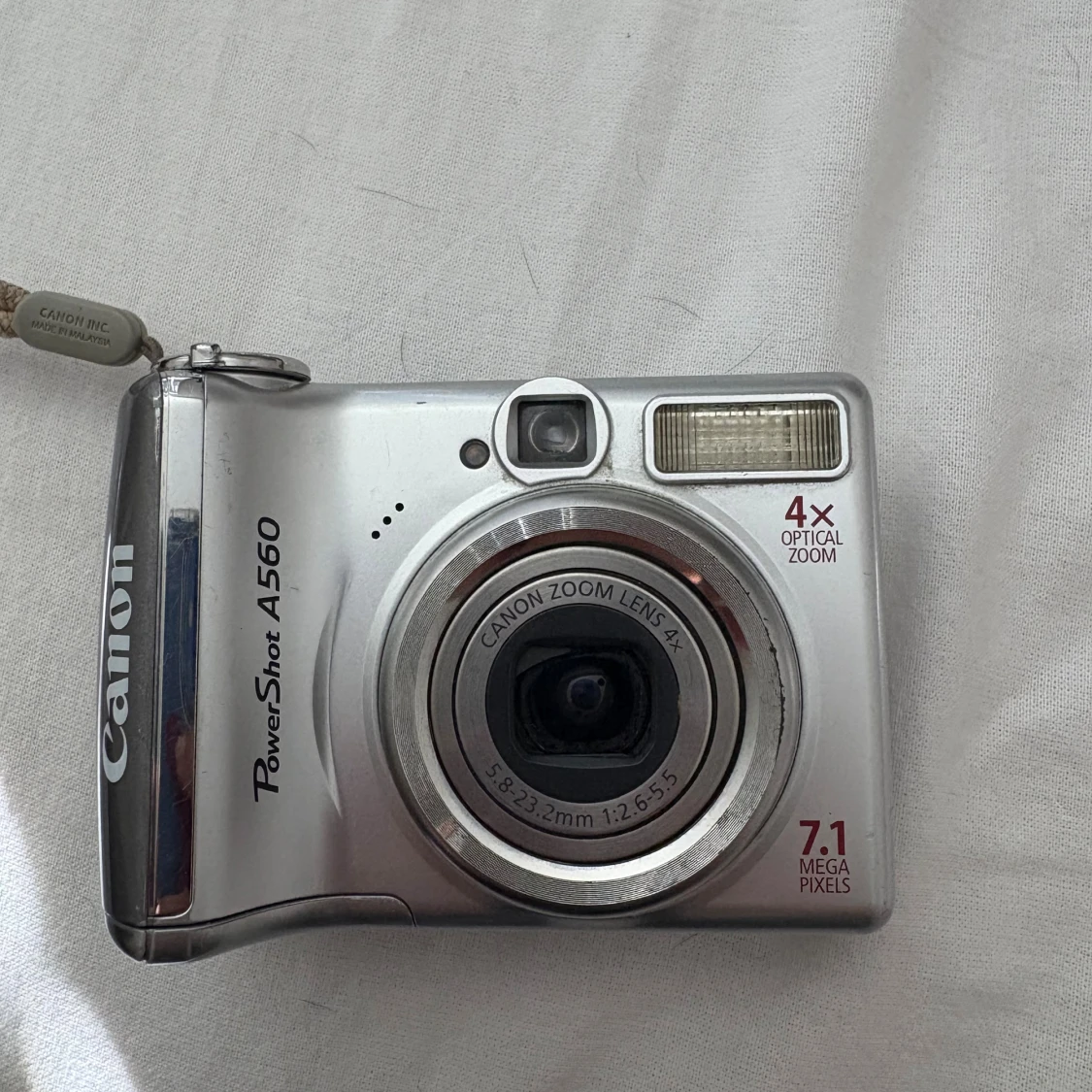 Canon PowerShot A560 digitalkamera med 7.1 megapixlar och 4x optisk zoom. Kameran är i fungerande bra skick ändå som strular är att man måste välja datum varje gång man startar kameran. Drivs av AA batterier som inte tillkommer. Perfekt retro kamera, sista bilden är tagen med kameran. Pris kan diskuteras vid snabb affär.