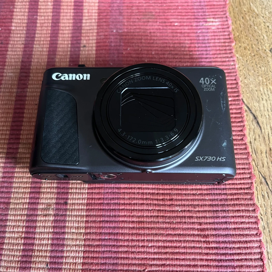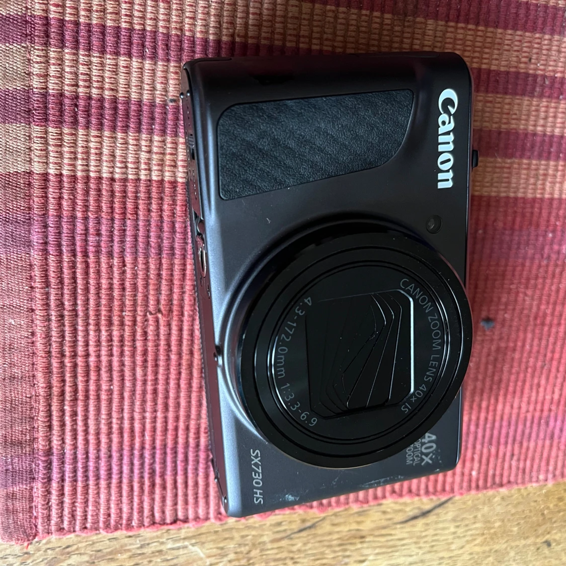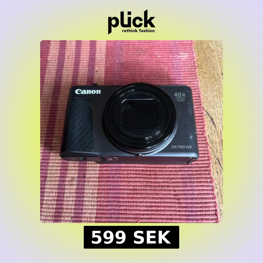 Canon PowerShot SX730 HS digitalkamera med 40x optisk zoom och 20,3 MP sensor. Full HD-video, vinklingsbar skärm och kompakt design. Mindre yttre slitage syns på fronten, men i gott skick och fullt fungerande. Perfekt för resor och vardagsfotografering. Nypris 6200 mitt pris 599 kr.