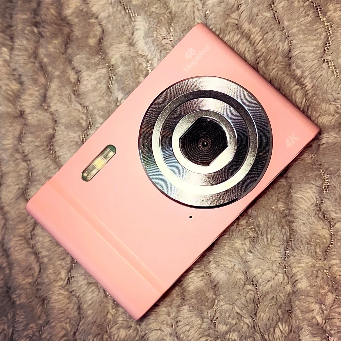 Snygg rosa digital kompaktkamera med 48MP och 4K-video. Stor display, enkla knappar och inbyggd blixt. Kameran är i nytt skick utan repor. LADDARE KOMMER MED. Pris kan diskuteras ❤️