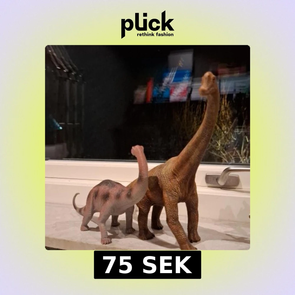 Två realistiska Brachiosaurus dinosauriefigurer i plast, perfekt för samlare eller barn. Fina detaljer och naturtrogna färger. Båda figurerna är i mycket gott skick utan synligt slitage eller skador. Perfekt för lek eller dekoration.