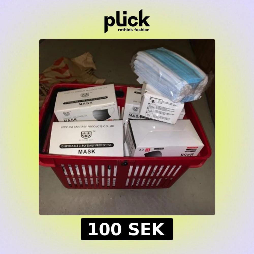 Flera oöppnade förpackningar med engångsmunskydd, 3-lagers skydd. Perfekt för dagligt bruk. Maskerna är nya och i originalförpackning, både svarta och blå varianter syns. Inga synliga defekter eller slitage.
