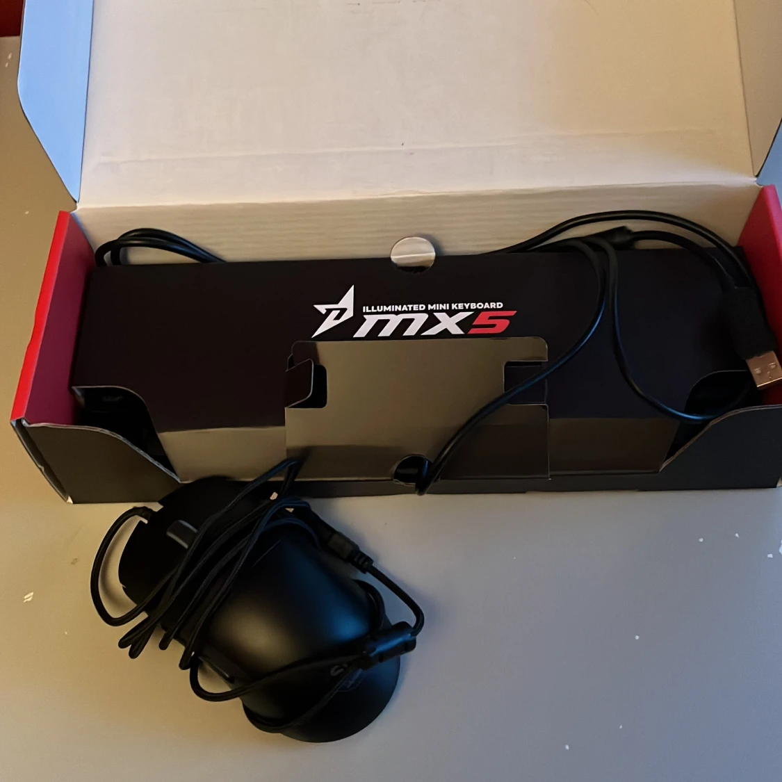 Snyggt DMX5 mini-tangentbord med belysning och USB-anslutning, perfekt för gaming eller arbete. Medföljer även en matchande USB-mus. Allt i originalförpackning, ser ut att vara i mycket gott skick utan synligt slitage eller defekter.
