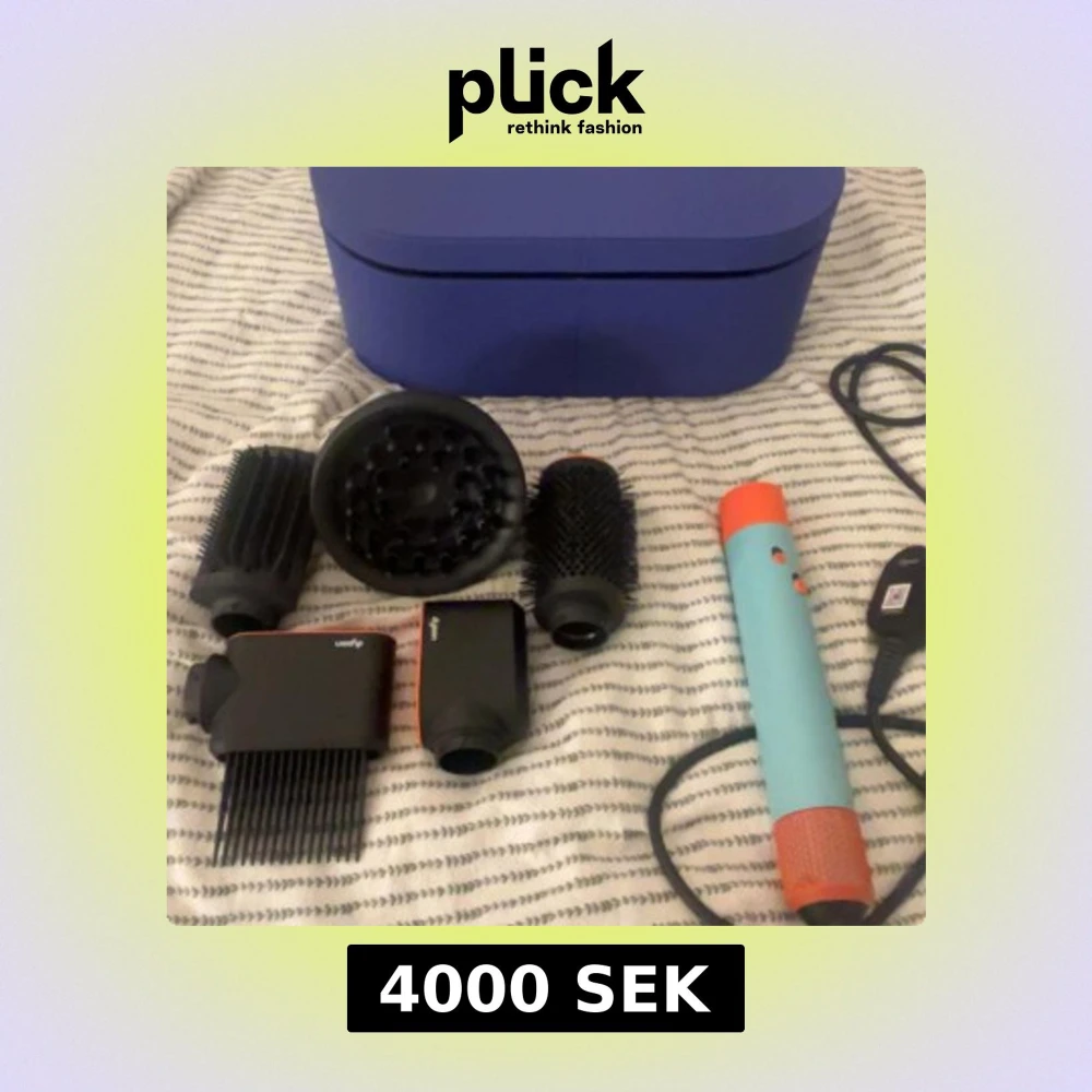 Dyson Airwrap Multi-Styler med flera stylingtillbehör, inklusive borstar, diffuser och kam. Säljs med originalförvaringsbox och strömkabel. Den är i mycket bra skick. Har inte använt alla tillbehör än så den är hyfsat ny. Perfekt för snabb hårstyling men som håller hela dagen😊