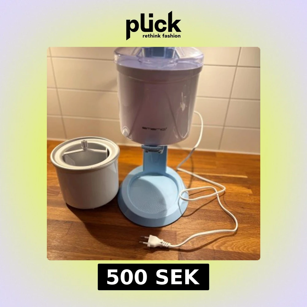 Emerio glass ice cream maker i nyskick, komplett med frysskål och lock. Enkel att använda med tydlig av/på-knapp. Perfekt för hemmagjord glass och sorbet. Inga synliga defekter eller slitage, ren och välvårdad. Passar utmärkt i köket för glassälskare. Den funkar utmärkt för mjukglass