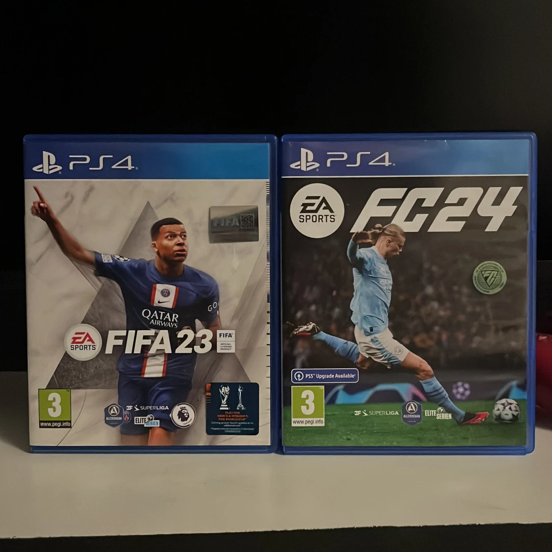 Två populära fotbollsspel till PlayStation 4: FIFA 23 och EA Sports FC 24. Båda spelen har originalfodral och ser ut att vara i mycket gott skick. Perfekt för fotbollsälskare som vill spela de senaste säsongerna med uppdaterade lag och ligor.