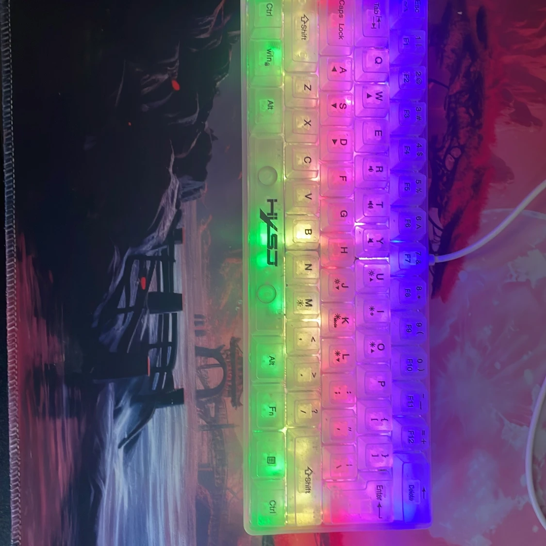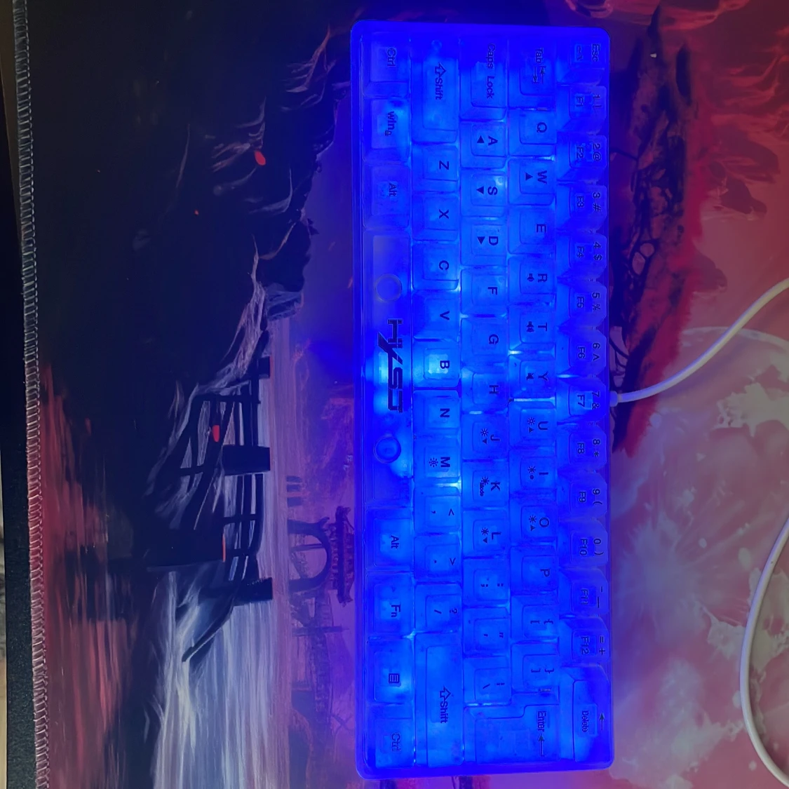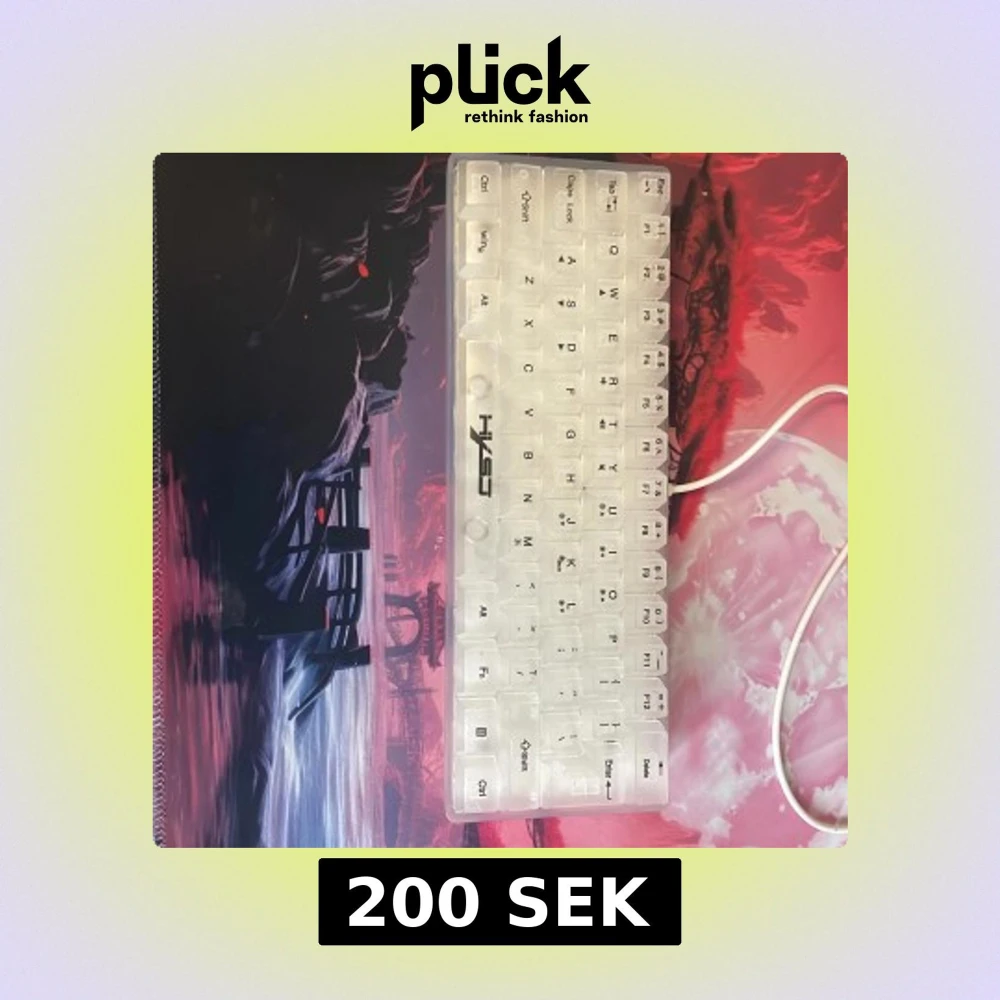 Snyggt HXSJ T700 mekaniskt tangentbord med transparenta keycaps och RGB-belysning. Flera färglägen, kompakt design och USB-anslutning. Tangentbordet är i mycket gott skick utan synligt slitage eller defekter. Perfekt för gaming eller kontor. Har inte använt den så länge. Om du trycker fn och m så byter den färg