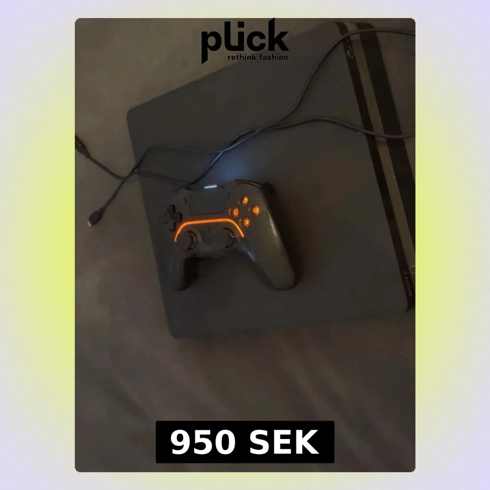 Sony PlayStation 4 spelkonsol i gott skick med tillhörande handkontroll. Konsolen har en stilren svart design och fungerar utmärkt. Handkontrollen har snygg LED-belysning. Perfekt för gaming och multimedia. Laddningskabel medföljer.