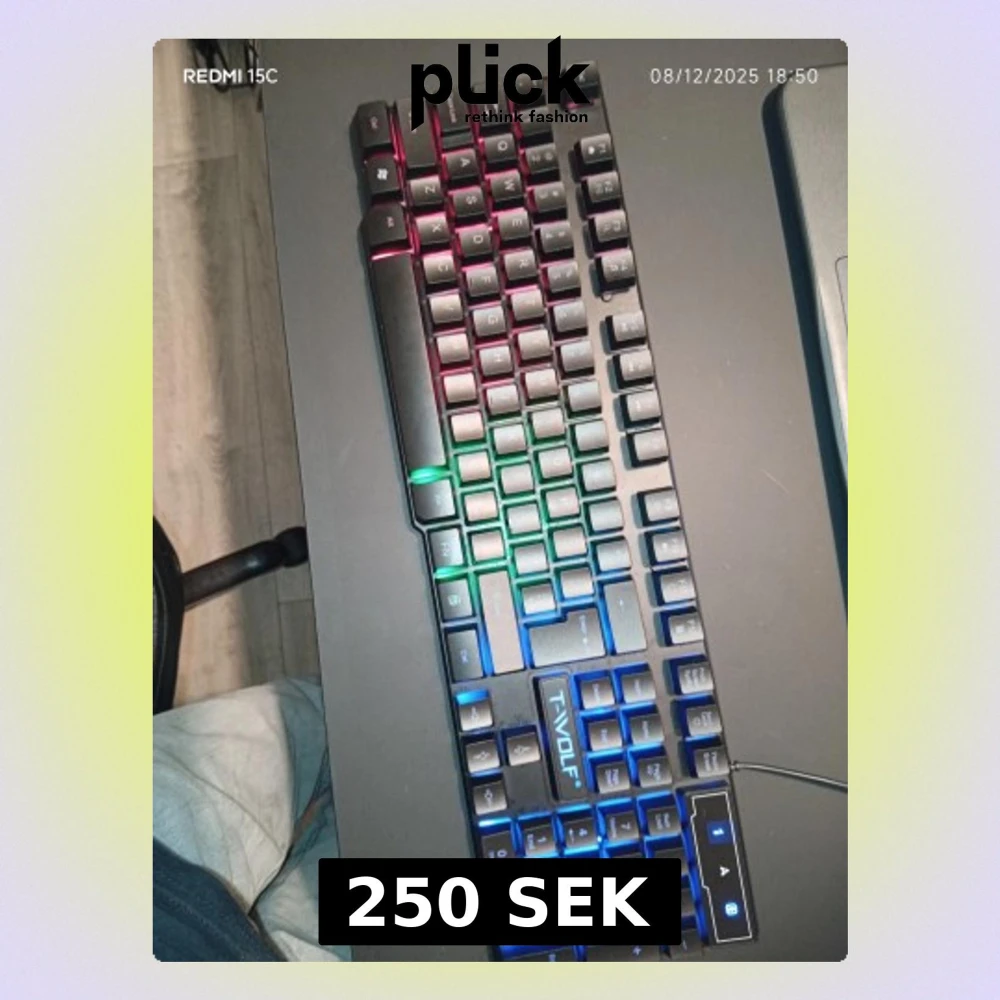 Snygg gamingtangentbord från T-WOLF med regnbågsbelysning och USB-anslutning. Fullstort med numerisk del, tydliga tangenter och robust design. Tangentbordet är i gott skick utan synligt slitage eller defekter. Perfekt för gaming och arbete.