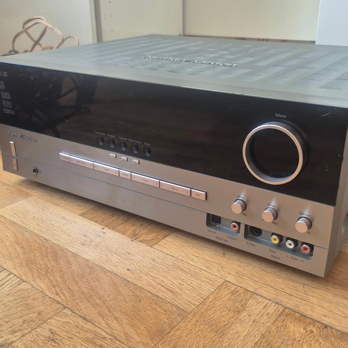 Harman Kardon AVR 235 surroundreceiver i gott skick. Många anslutningar för högtalare och externa enheter, stöd för Dolby Digital och DTS. Frontpanel med volymratt, tonkontroller och snabbval. Mindre ytliga repor, annars välbevarad. Perfekt för hemmabio eller musikälskare.