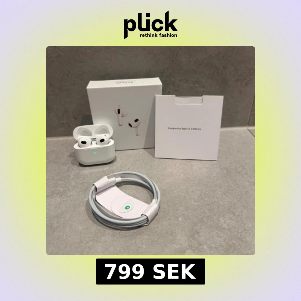 Säljer mina AirPods 3 som är i väldigt fint skick. De har bara använts tre gånger och fungerar perfekt. Inga skador, inga repor – ser ut som nya. Jag säljer dem eftersom jag inte använder hörlurar så ofta längre. Ett riktigt bra köp för dig som vill ha AirPods i toppskick utan att betala nypris. Skriv för prisförslag och mer bilder