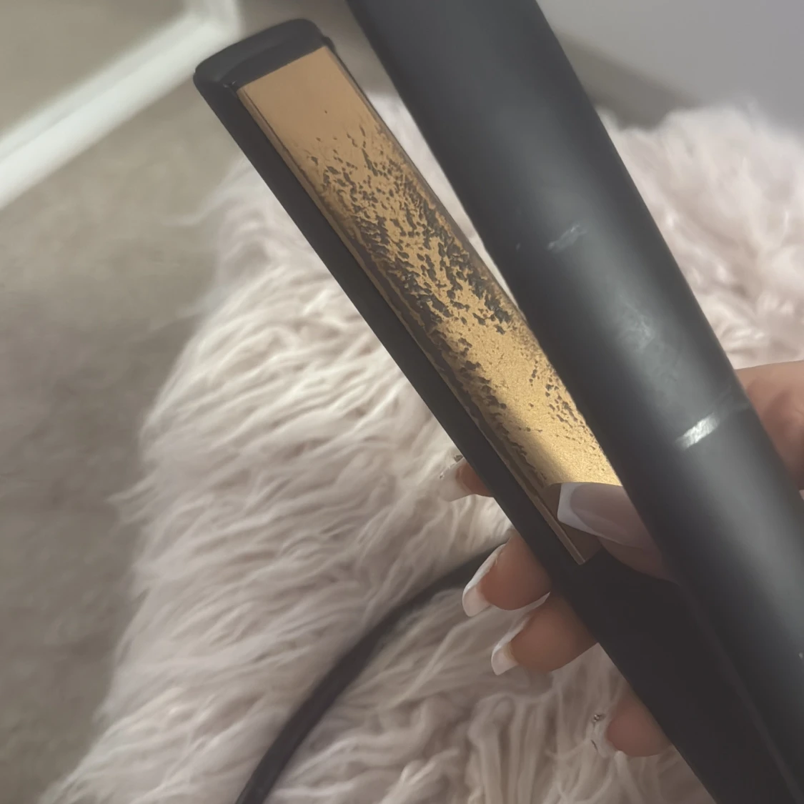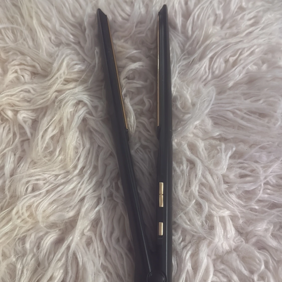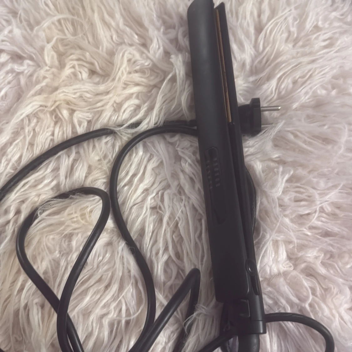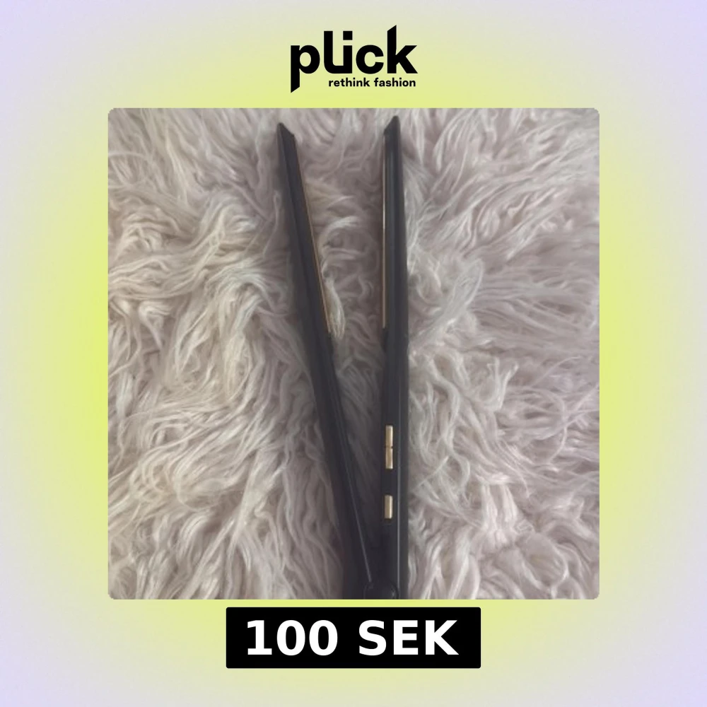 Svart plattång - fungerar bra trots slitage. Värmeplattorna har lite slitage och en liten brännmärkning, men det påverkar inte användningen. Perfekt för dig som vill ha en fungerande plattång till ett bra pris.