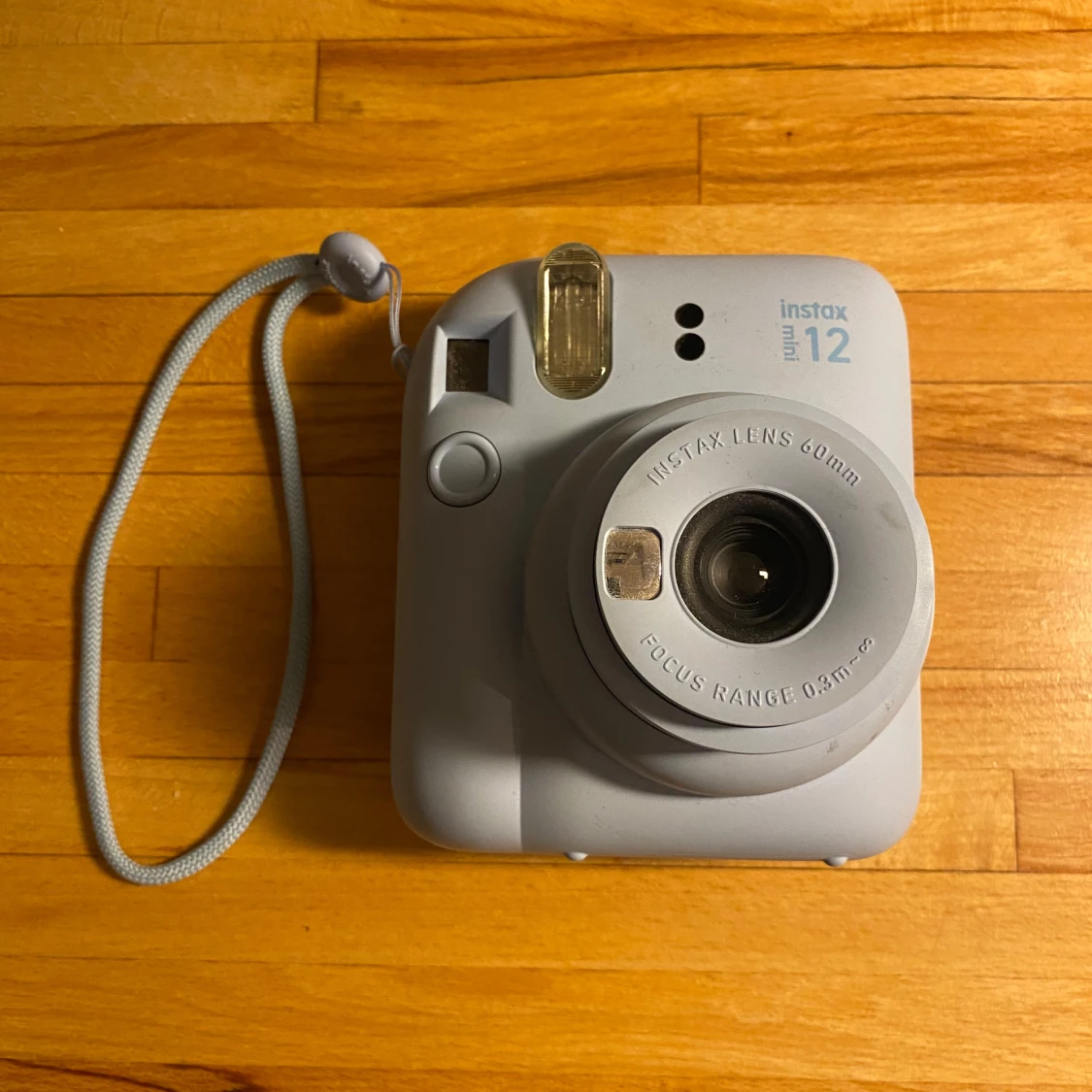 Fujifilm Instax Mini 12 i ljusblått, kompakt och lättanvänd direktkamera. Utrustad med 60mm lins och inbyggd blixt. Kameran är i gott skick. Kommer inte med filmer. Ny pris är 900. Kontakta för mer info.