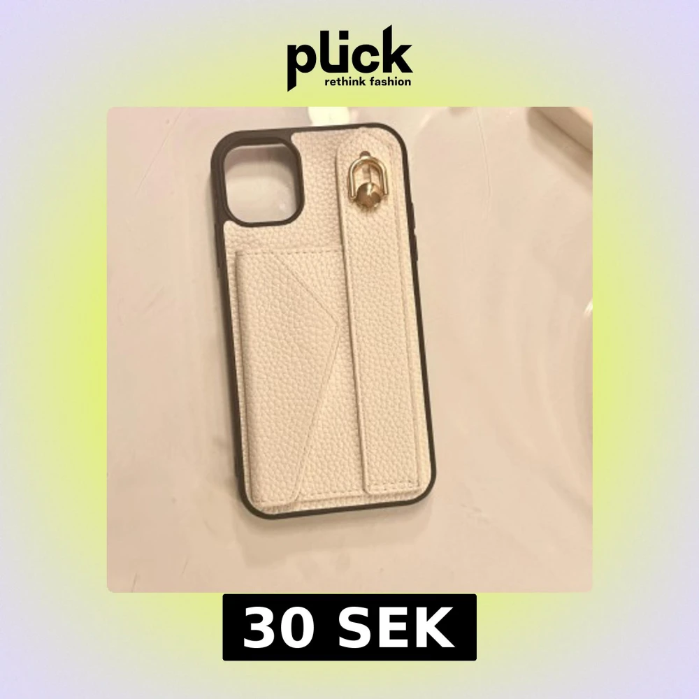 Elegant vitt plånboksfodral till iPhone 11 med strukturmönstrad yta, handrem och guldfärgad detalj. Fodralet har ett praktiskt kortfack med magnetlås. Skicket är mycket gott, utan synligt slitage eller defekter.