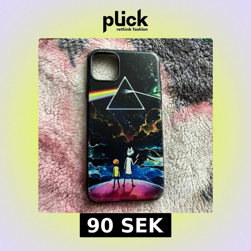 Unikt iPhone 11 Pro Max-skal med Rick and Morty och Pink Floyd Dark Side of the Moon-motiv. Skalet är i gott skick med mindre tecken på användning invändigt. Perfekt för fans av både serien och klassisk rock.