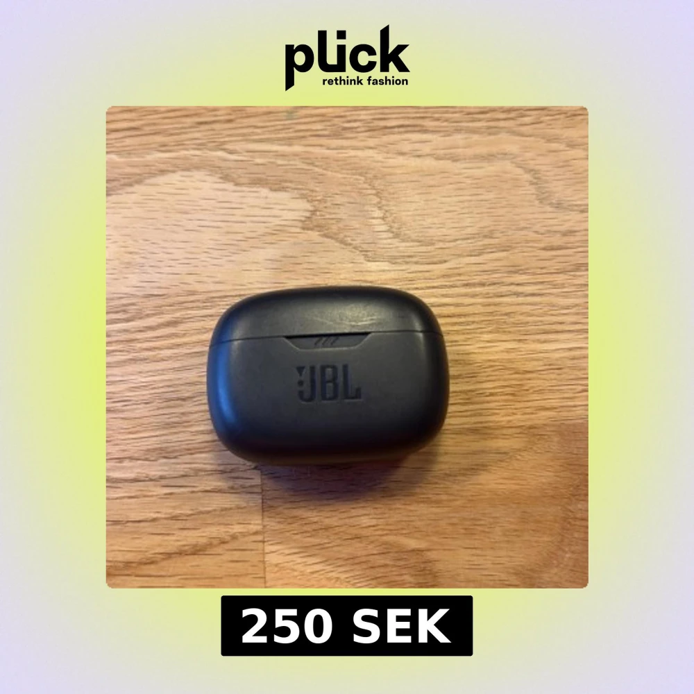 Snygga svarta JBL trådlösa hörlurar med laddningsetui. Hörlurarna och etuiet är i gott skick med minimalt slitage. Perfekt för musik, samtal och träning. Kompakt design och bekväm passform. Allt fungerar som det ska. Laddsladd ingår också (dock ej kontakt).