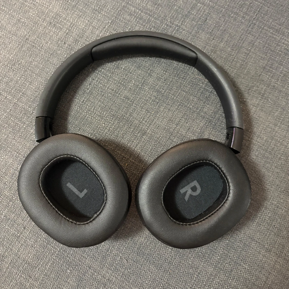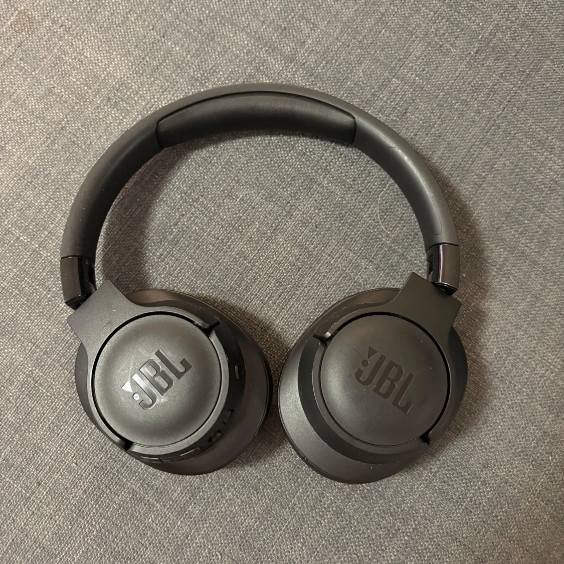 Snygga svarta JBL over-ear hörlurar med trådlös anslutning. Mjuka öronkuddar och justerbar bygel för bekväm användning. Hörlurarna är i gott skick utan synligt slitage eller defekter. Perfekt för musik, film och samtal med hög ljudkvalitet.