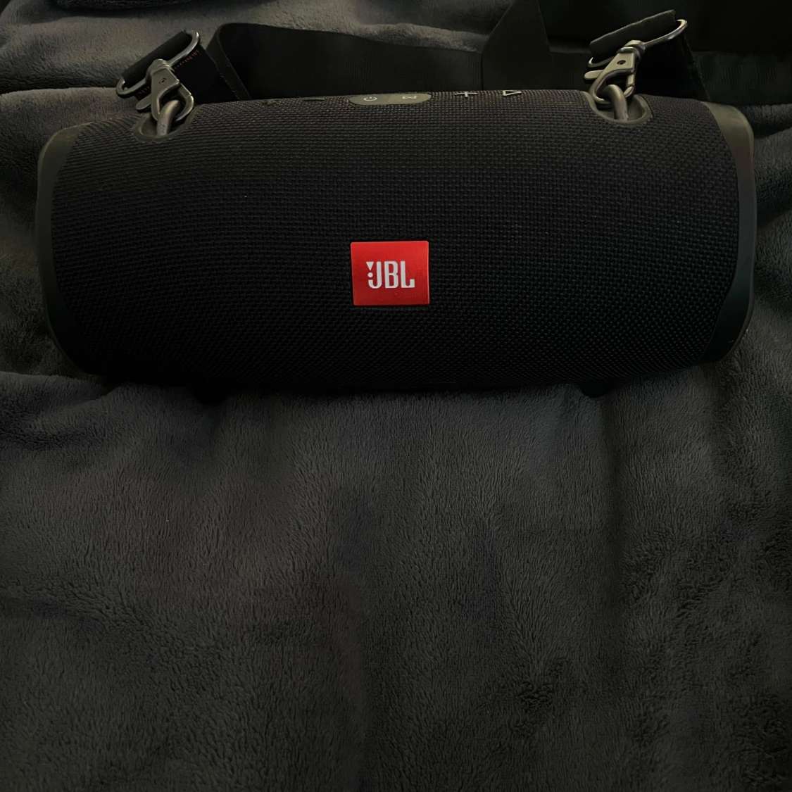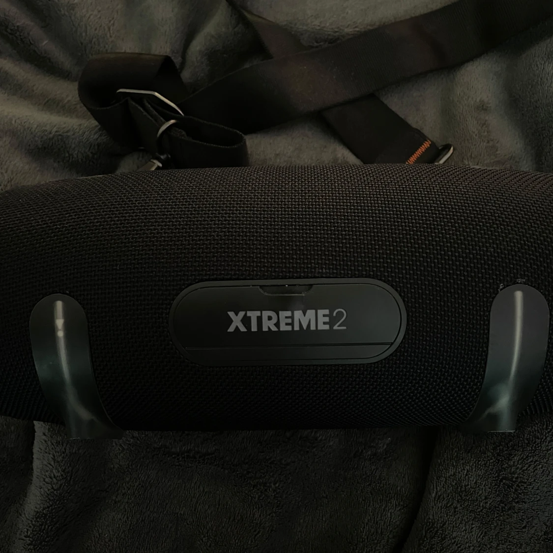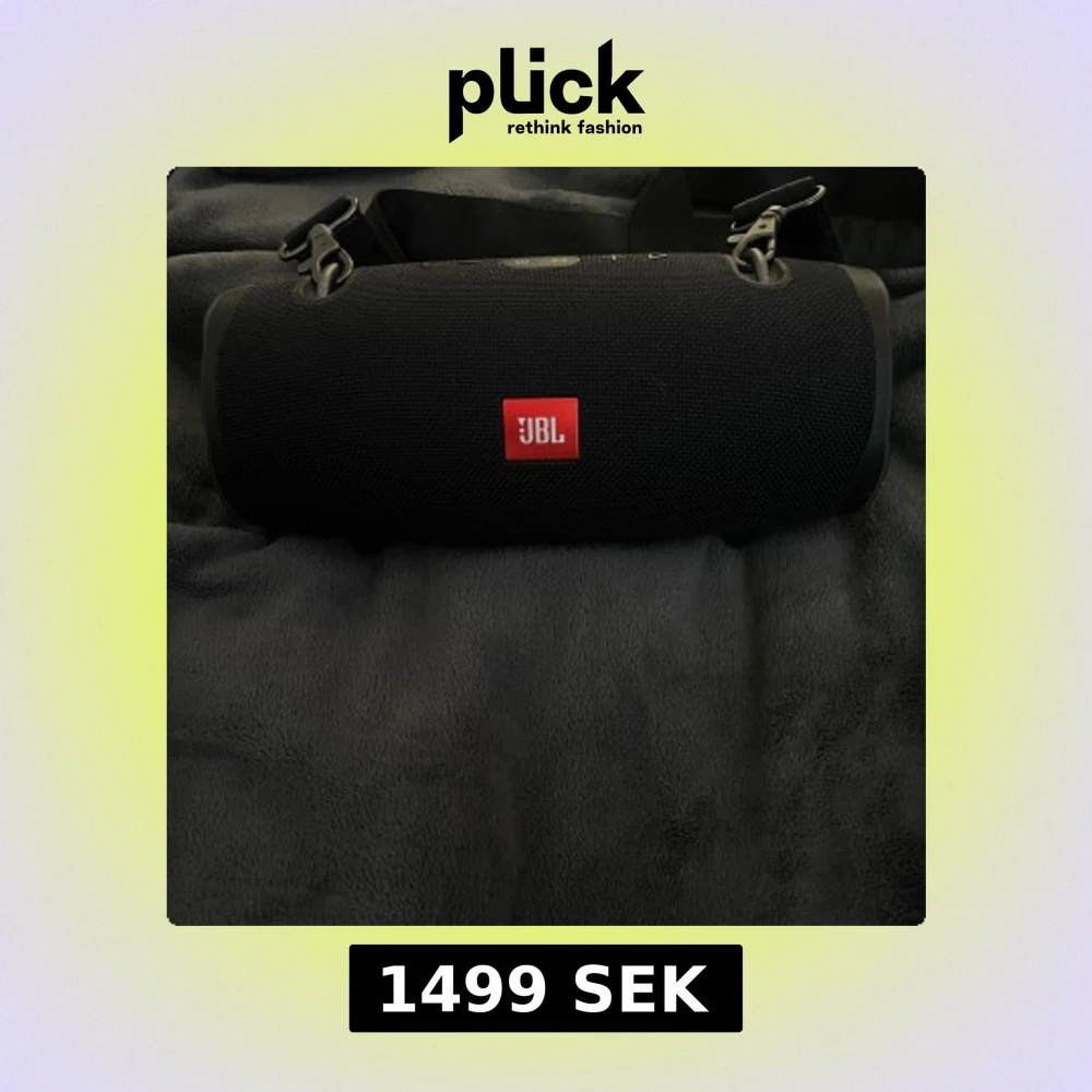 JBL Xtreme 2 bärbar Bluetooth-högtalare i svart, med original axelrem och laddare. Högtalaren är i fint skick utan synliga skador eller slitage. Perfekt för både inomhus och utomhusbruk med kraftfullt ljud och lång batteritid.