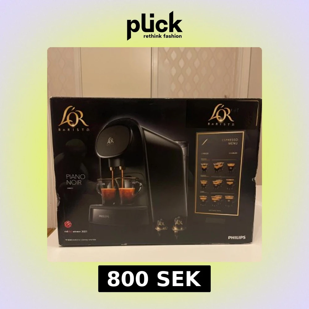 Elegant L'OR Barista Piano Noir kapselmaskin från Philips, modell LM8012. 19 bars tryck för perfekt espresso, cappuccino och lungo. Maskinen är i mycket gott skick, utan synligt slitage. Enkel att använda med flera dryckesalternativ. Red Dot Winner 2021.