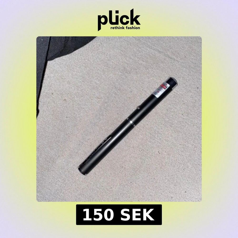 Kraftfull svart laserpekare med metallkropp och fickklämma. Utrustad med varningsetikett och tryckknapp. Fungerar utmärkt och ger stark laserstråle, perfekt för presentationer eller utomhusbruk. Inga synliga defekter eller slitage. Batteri ingår