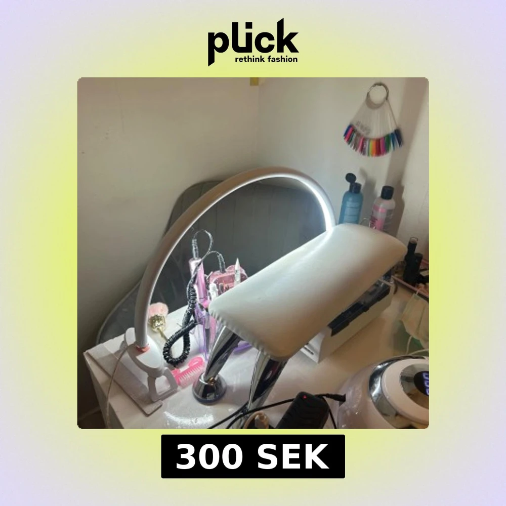 Praktisk LED-båglampa med starkt vitt ljus, perfekt för nagelbord eller skönhetsarbete. Fästs enkelt med klämmor på båda sidor. Lampan är i fint skick, fungerar utmärkt och ger jämn belysning över arbetsytan. Inga synliga defekter eller slitage.