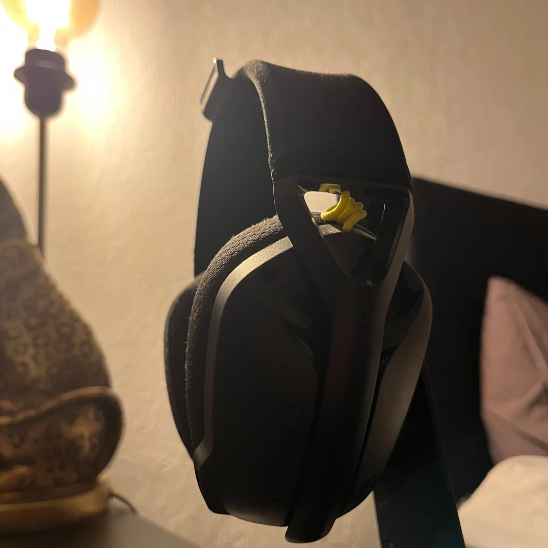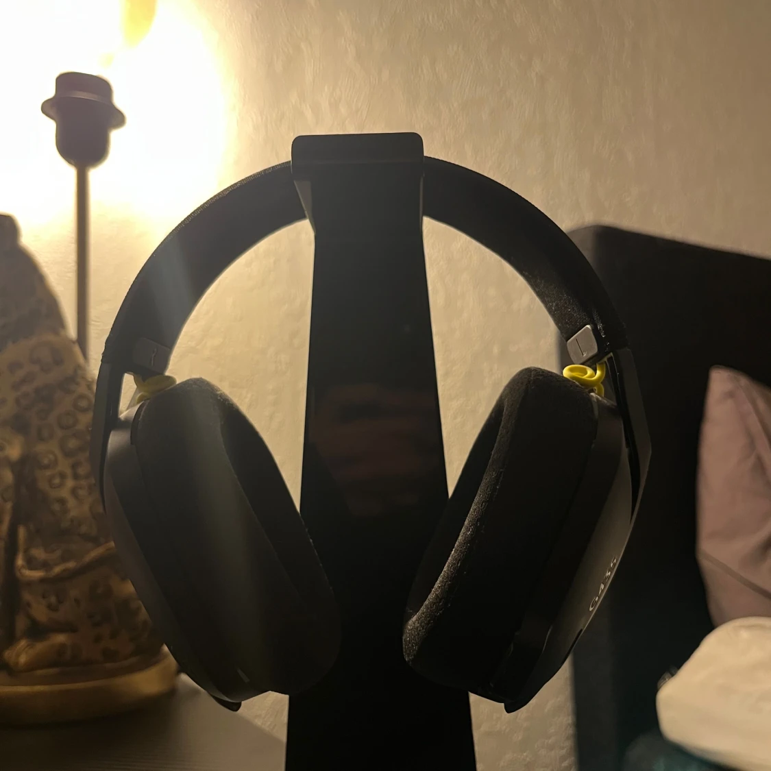 Logitech G435 trådlöst gamingheadset i svart. Lätta och bekväma over-ear-kuddar, justerbart huvudband och tydlig märkning. Synligt i gott skick, inga större repor eller slitage. Perfekt för spel och långvarig användning.