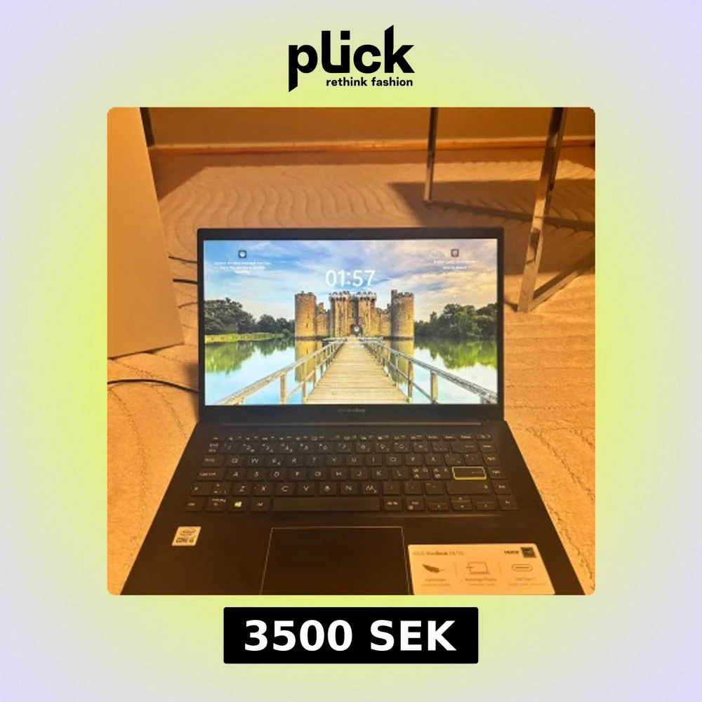 ASUS VivoBook 14/15 med Intel Core i5-processor. Lätt och smidig laptop med NanoEdge-skärm, HDMI, USB Type-C och numeriskt tangentbord. Skärmen och chassi ser ut att vara i gott skick utan synliga repor eller skador. Perfekt för studier eller arbete.