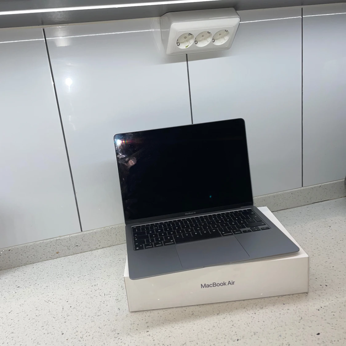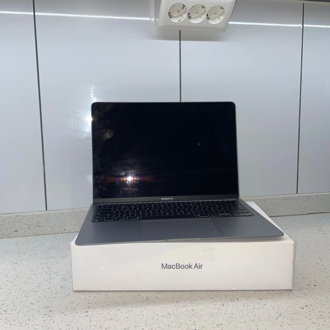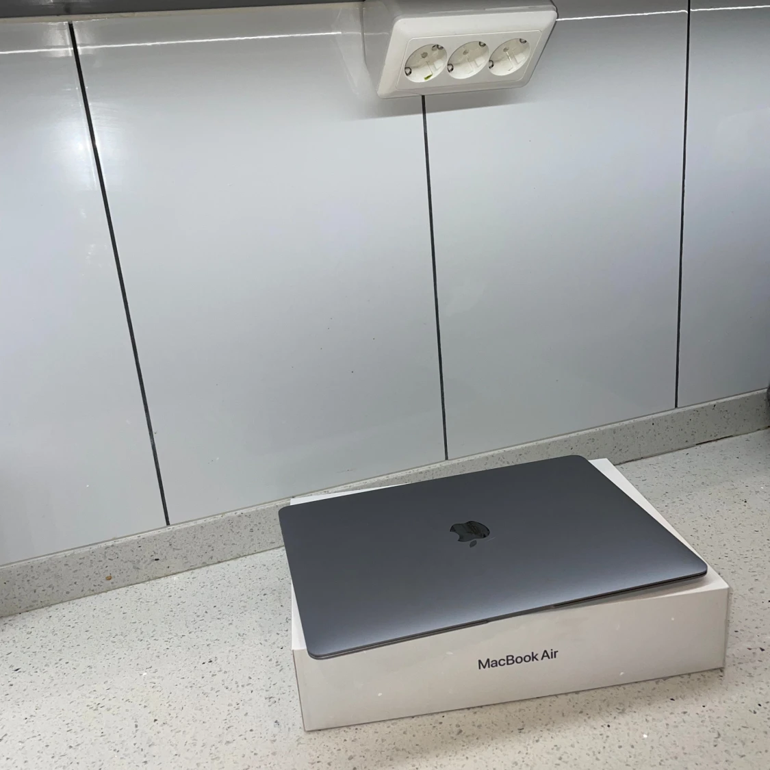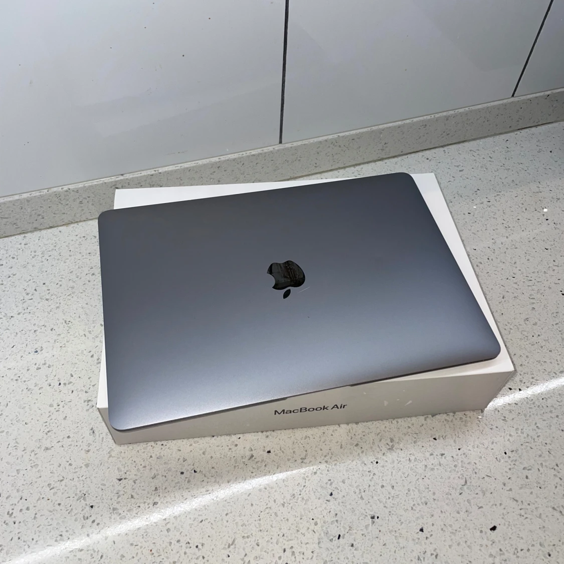 Snygg MacBook Air i Space Gray med originalkartong. Datorn ser ut att vara i mycket gott skick utan synliga repor eller skador. Perfekt för studier, arbete eller vardagsbruk. Tunn, lätt och kraftfull med Apples välkända kvalitet.