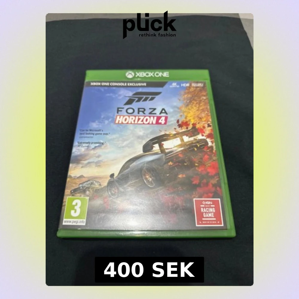 Forza Horizon 4 till Xbox One, komplett med fodral och skiva. Spelet är i mycket gott skick och erbjuder fantastisk racingupplevelse med 4K och HDR-stöd. Perfekt för bilentusiaster och fans av racingspel. Inga synliga defekter eller slitage.