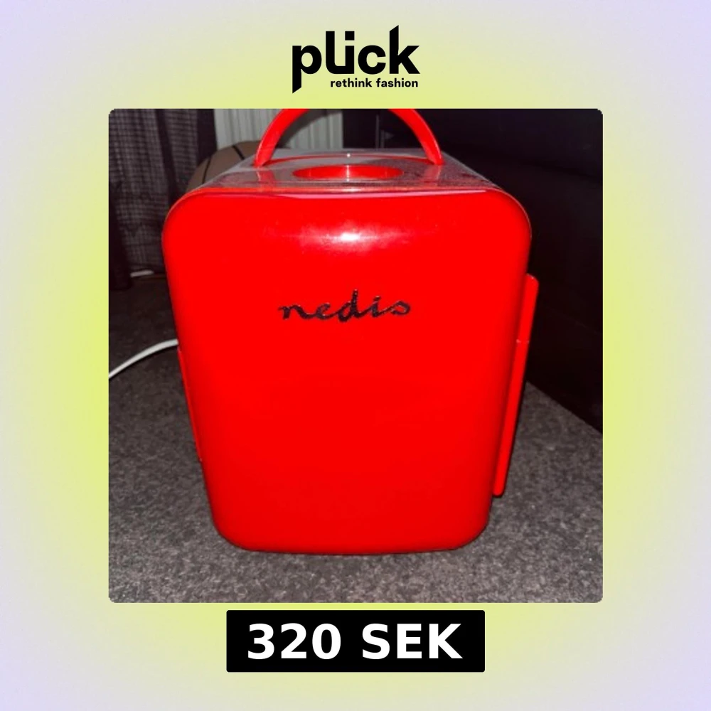Snyggt och Nedis mini kylskåp i röd färg, perfekt för kontor, sovrum eller resor. Utrustad med hylla och dörrfack för extra förvaring. Hyllan kan man även plocka bort, Något slitage syns invändigt, men i övrigt gott skick och fullt fungerande.! Kommer med sladd så man kan ha den i bilen med!