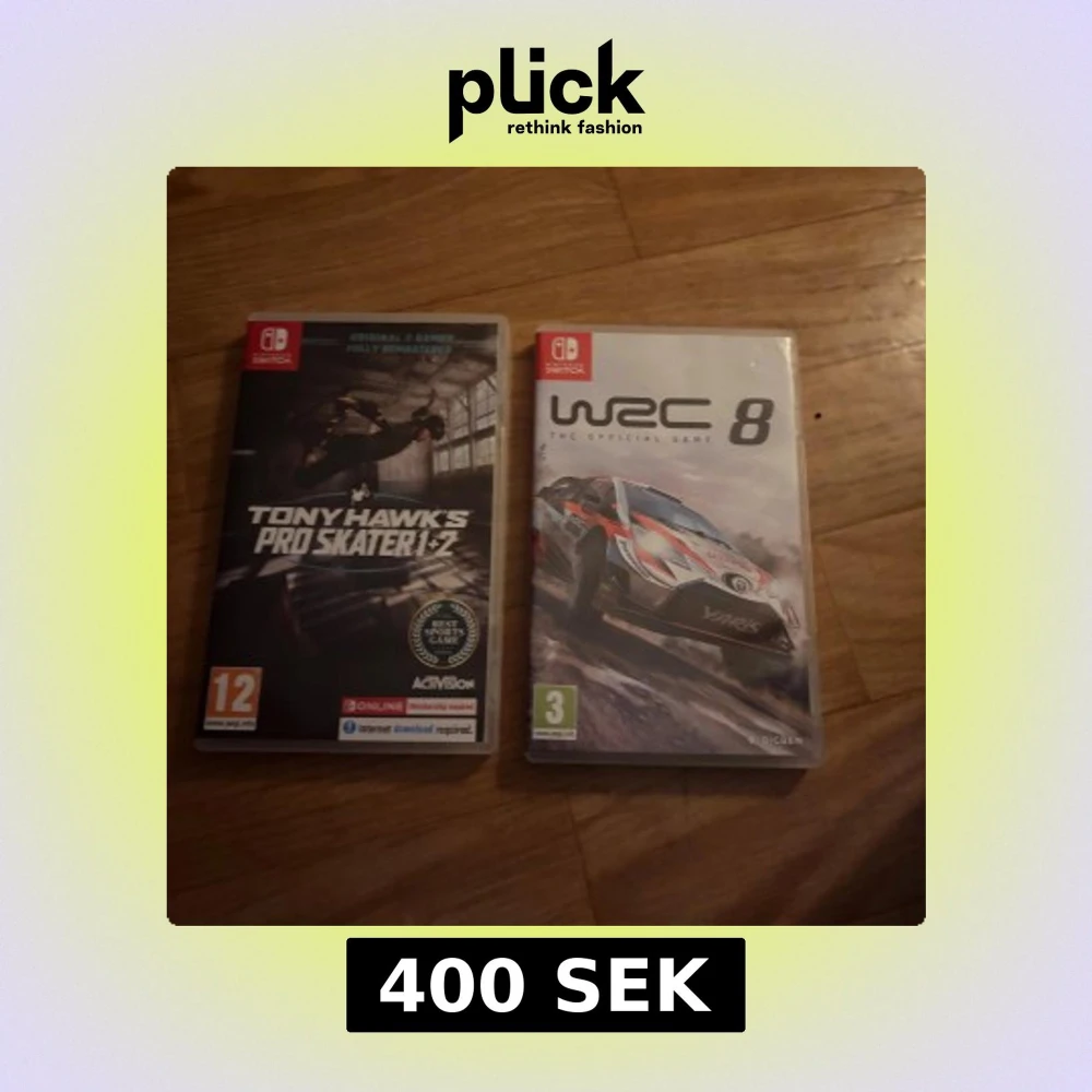 Två Nintendo Switch-spel i fint skick: Tony Hawk's Pro Skater 1+2 (remaster av klassiker) och WRC 8 (officiellt rallyspel). Är i mycket gott skick, inga synliga skador eller slitage. 400 för båda